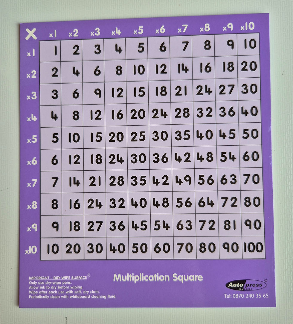 Dual-Sided Wipeable Multiplication Square – Reusable Maths Practice
